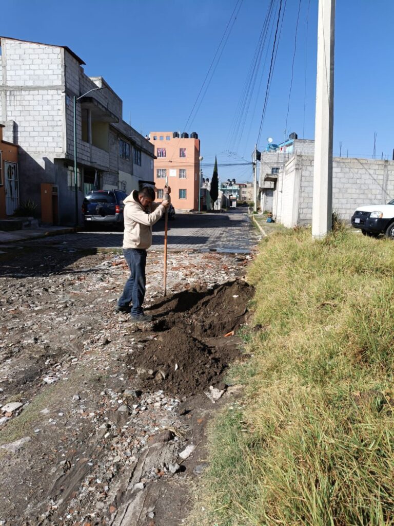 Entre los trabajos realizados, se brinda atención a un socavón registrado en la calle Allende, así como labores en calle Josefina, a la altura del número 204, donde además se llevan a cabo trabajos de bacheo para mejorar las condiciones de la vialidad.