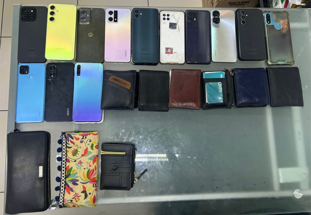 Gracias a la pronta y efectiva intervención de los elementos de la Dirección de Seguridad Pública Municipal, durante la celebración de la Noche que Nadie Duerme, se logró la detención de una persona que portaba diversos artículos, principalmente teléfonos celulares y carteras, presuntamente robados.