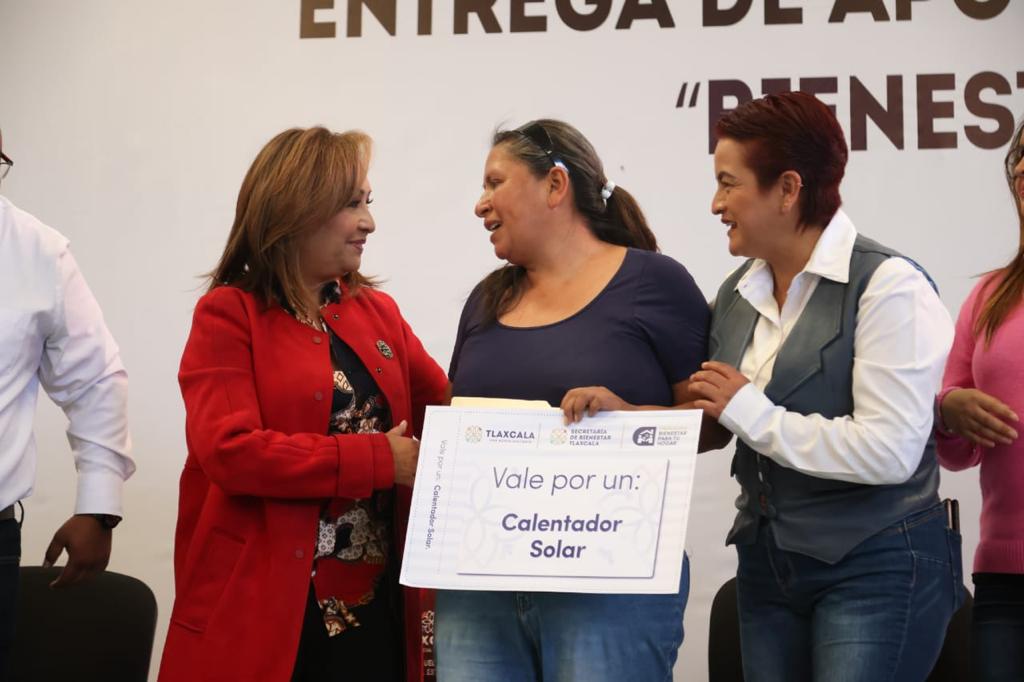 La gobernadora Lorena Cuéllar Cisneros entregó apoyos del Programa Bienestar para Tu Hogar a 142 familias vulnerables del municipio de Tetlatlahuca, consistentes en calentadores solares, tinacos y juegos de baño con kit de pintura, con lo que mejorarán sus condiciones de vivienda.