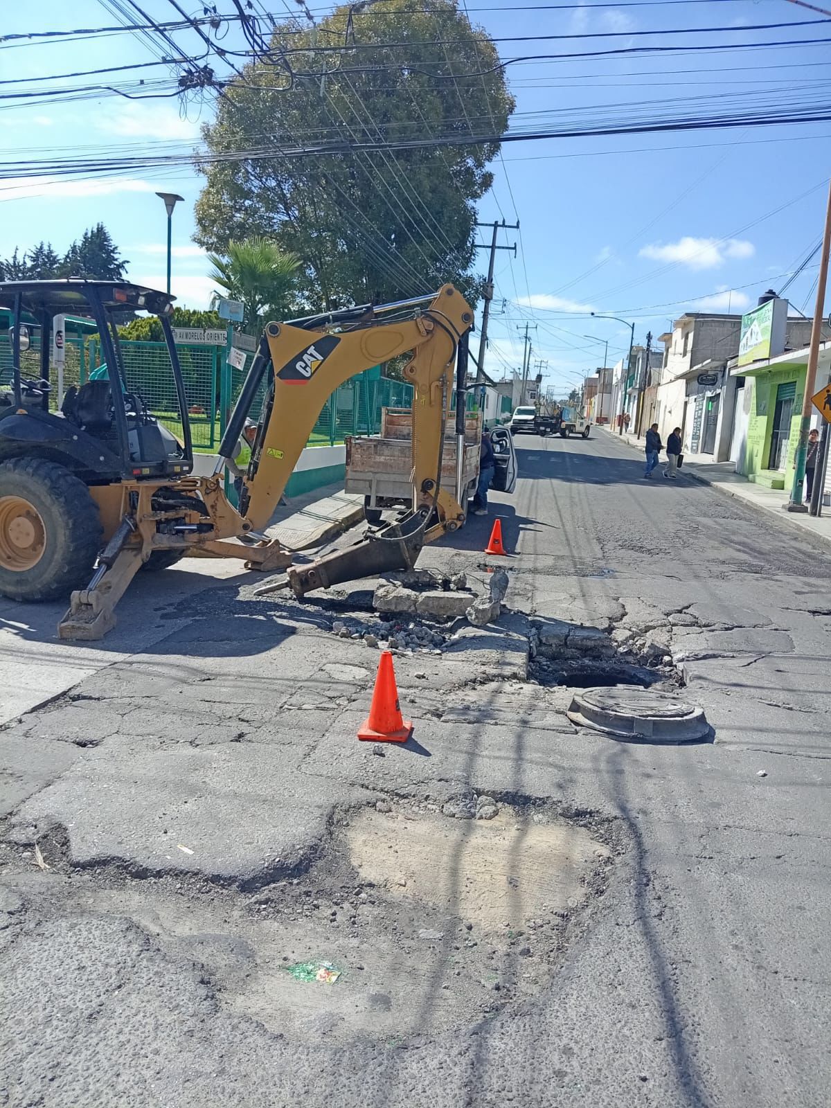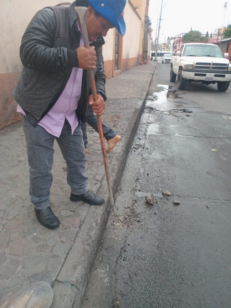 Asimismo, se realizaron acciones de desazolve en la Calle Narciso Mendoza esquina con Morelos, con el objetivo de prevenir encharcamientos y mantener en buen estado la red de drenaje sanitario.
