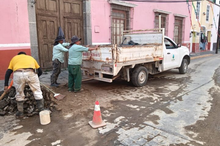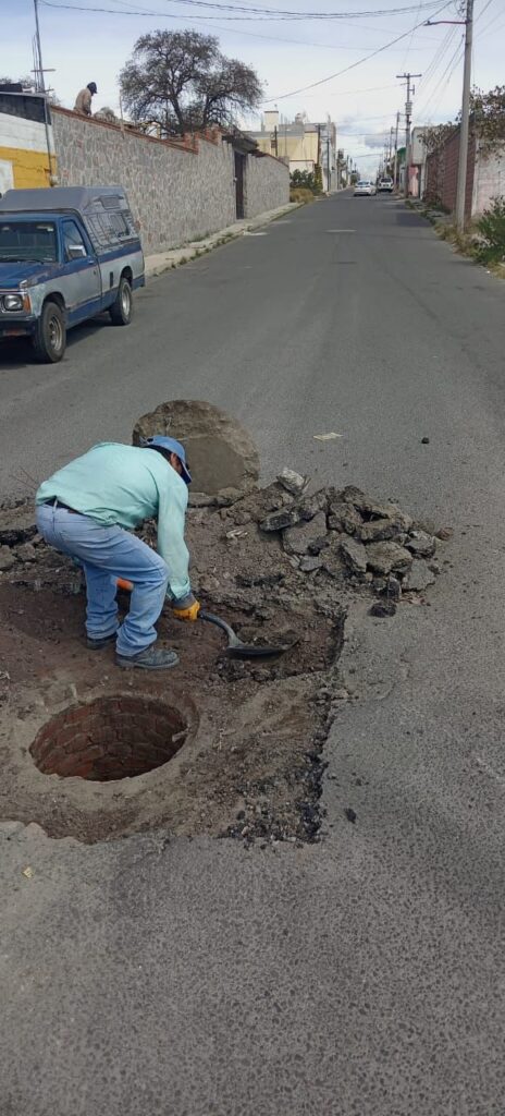 Asimismo, se efectuaron labores de bacheo en Privada de Juárez y el cambio de brocal, contribuyendo a la seguridad vial y a la correcta operación de la infraestructura hidráulica.