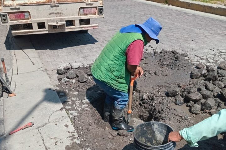 Como parte de las acciones complementarias derivadas de las intervenciones en la red hidráulica, también se realizaron trabajos de bacheo en las calles 20 de Noviembre y San Javier, contribuyendo al mejoramiento de las vialidades donde se efectuaron reparaciones.