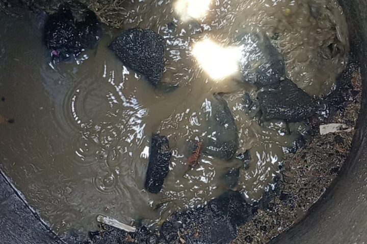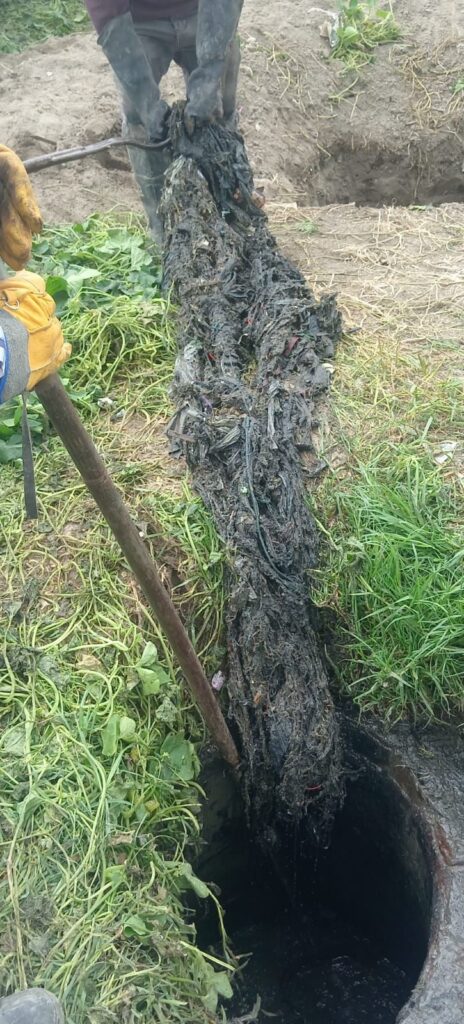 Durante estas labores también se realizó la limpieza de un pozo de visita, en el cual se encontró una gran cantidad de desperdicios, lo que representa un riesgo de taponamientos y afectaciones al flujo de las aguas residuales.
