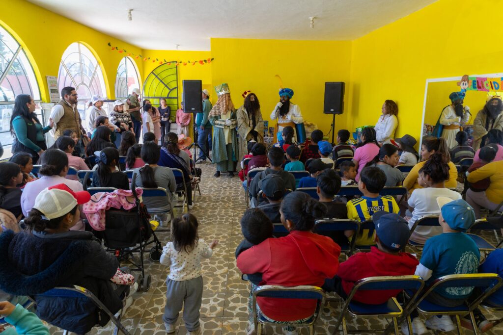 De manera especial, el presidente municipal también acudió a la Casa Ejidal, donde entregó juguetes a las hijas e hijos de campesinas y campesinos de Huamantla, reconociendo el valor del campo y de las familias que todos los días trabajan la tierra y sostienen una parte fundamental del municipio.
