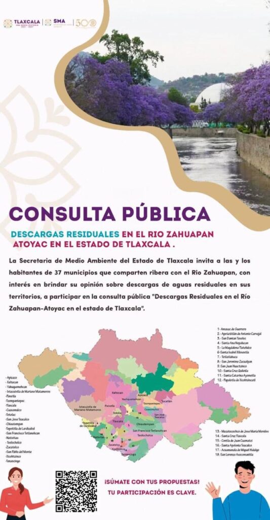 La Secretaría de Medio Ambiente (SMA) invita a la población de los 37 municipios por los que pasa el Río Zahuapan a participar en la Consulta Pública Ciudadana sobre la situación ambiental del afluente.