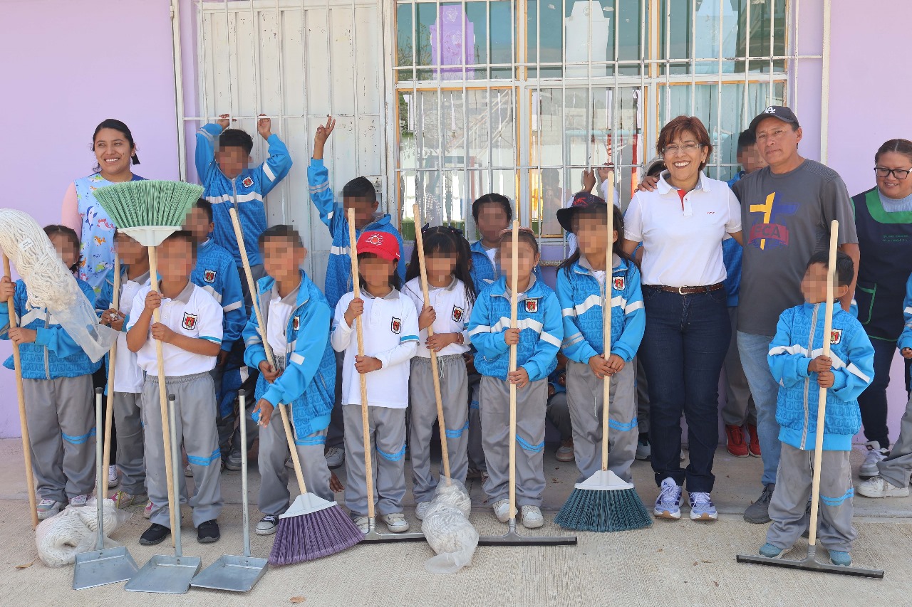 Con el compromiso de fortalecer la higiene y garantizar entornos escolares seguros, la administración municipal encabezada por la C.P. Alma Lorena Escobar González realizó la entrega de más de 100 kits de limpieza a instituciones educativas de diversas comunidades del municipio.