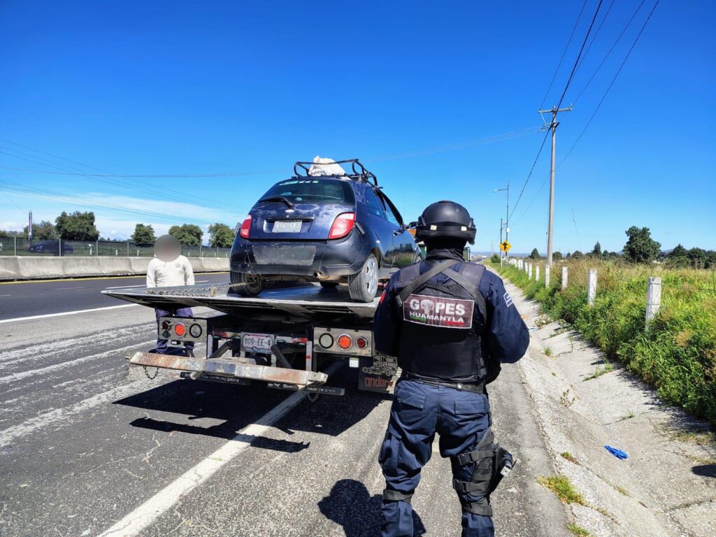 Huamantla, Tlaxcala.- Elementos de la Dirección de Seguridad Pública, Tránsito y Protección Civil de Huamantla lograron la detención de un sujeto presuntamente involucrado en un robo con violencia, así como la recuperación del vehículo utilizado durante el delito, en un hecho ocurrido en la comunidad de Carmen Xalpatlahuaya.