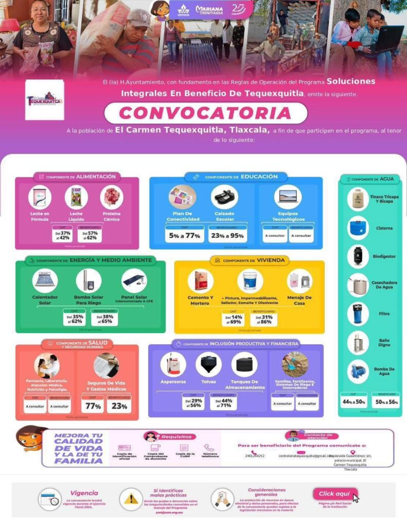 El Honorable Ayuntamiento de El Carmen Tequexquitla, Tlaxcala, en coordinación con la Congregación Mariana Trinitaria, puso en marcha el programa “Soluciones Integrales en Beneficio de Tequexquitla”, con el objetivo de mejorar la calidad de vida de las familias del municipio.