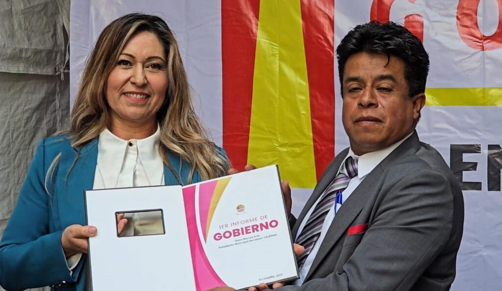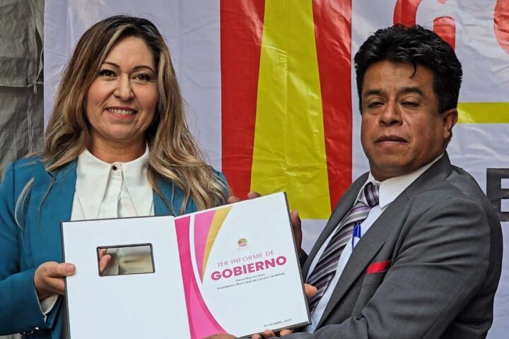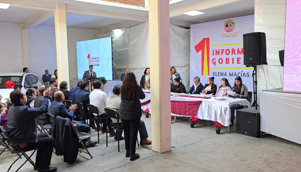 Lázaro Cárdenas, Tlaxcala.– En sesión de Cabildo y ante la ciudadanía, la presidenta municipal Elena Macías Díaz entregó de manera formal su Primer Informe de Gobierno, correspondiente al primer año de la administración municipal, dando cumplimiento a lo establecido por la Ley Municipal del Estado de Tlaxcala.