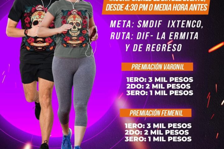 La carrera tendrá como punto de salida y meta las instalaciones del SMDIF Ixtenco, con ruta hacia La Ermita y regreso, cubriendo una distancia total de cinco kilómetros. Las categorías serán varonil y femenil, con atractivos premios para los ganadores.
