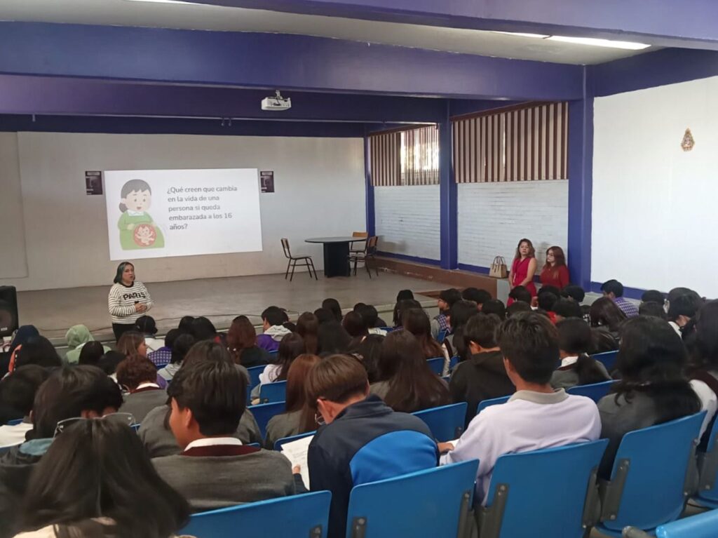 Más de 70 estudiantes del Colegio de Bachilleres del Estado de Tlaxcala Plantel 02 participaron en la plática “Prevención del embarazo en adolescentes”, realizada en sus instalaciones a través de la Secretaría de las Mujeres del Estado de Tlaxcala y organizada por el Instituto Municipal de la Mujer.