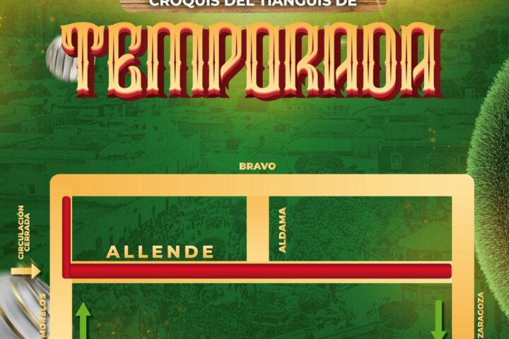 Del 20 al 31 de diciembre, la calle Allende entre Abasolo y Zaragoza será cerrada completamente al tránsito vehicular, debido a la mayor afluencia y operación total del tianguis navideño. En el caso de la calle Morelos, la circulación continuará de manera parcial con paso reducido.
