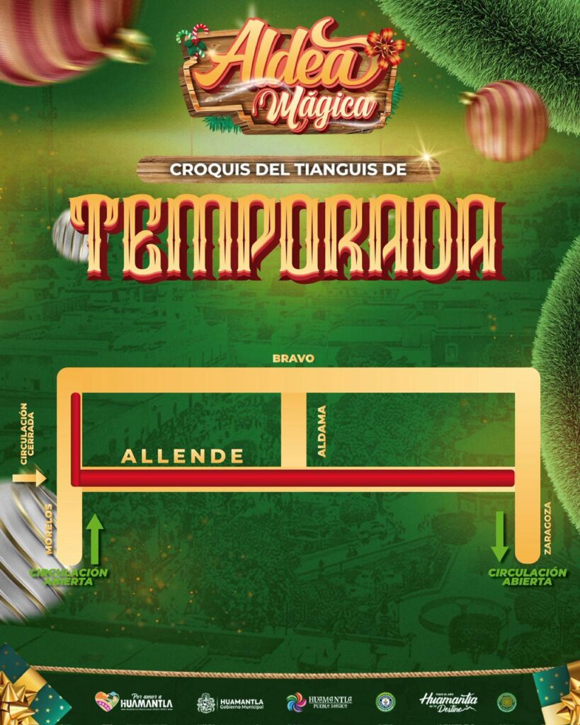 El Gobierno del Municipio de Huamantla, a través de su área de Comercio, informa que con motivo del tianguis de temporada navideña instalado en la zona centro, se aplicarán medidas viales para garantizar la seguridad de comerciantes, visitantes y automovilistas.
