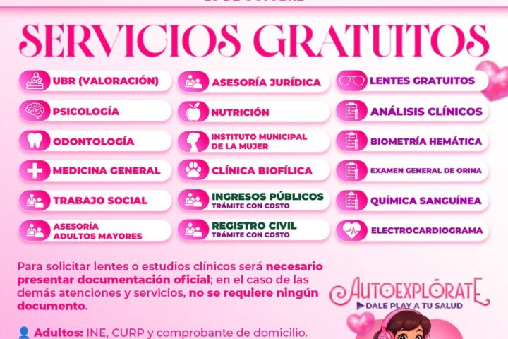 Además, se contará con la entrega de lentes gratuitos y la participación del Instituto Municipal de la Mujer, así como con módulos del Registro Civil e Ingresos Públicos, cuyos trámites tendrán costo.