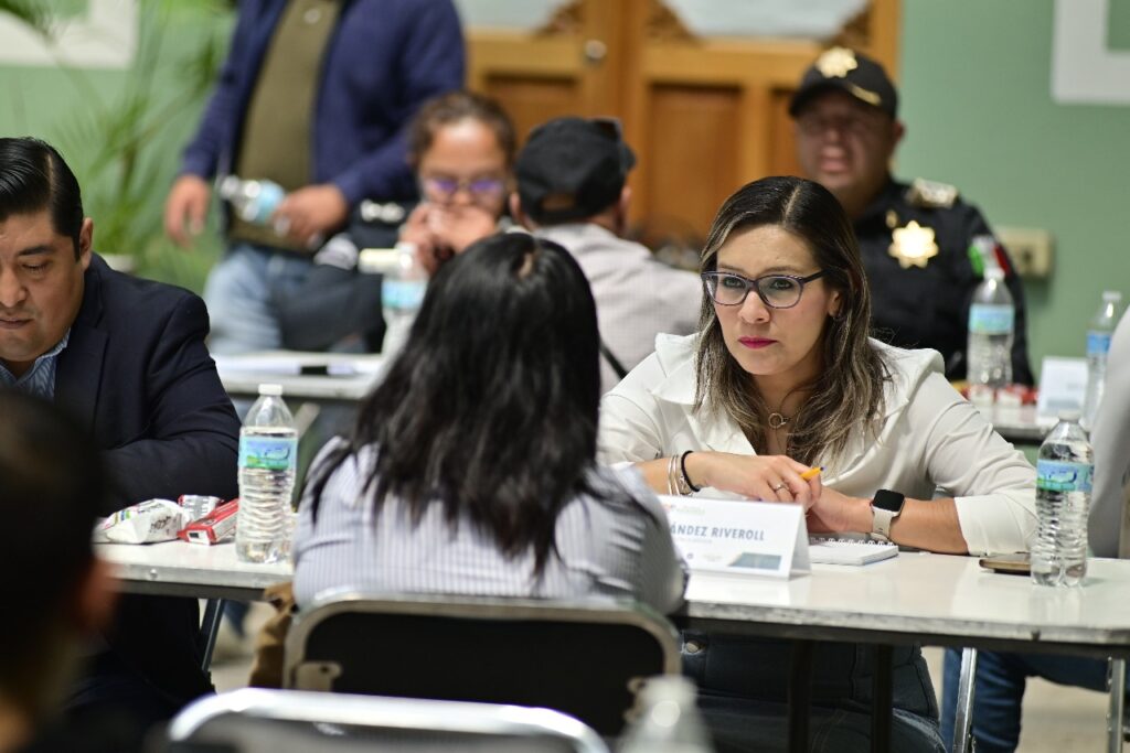 Durante la jornada de trabajo, áreas como Seguridad, Obras Públicas, Atención a la Mujer, Protección Civil, Jurídico y Administrativo, entre otras, sostuvieron mesas de diálogo directo con las y los representantes de comunidad.