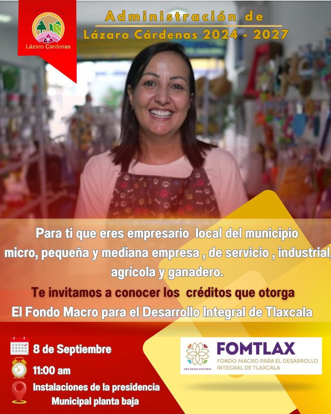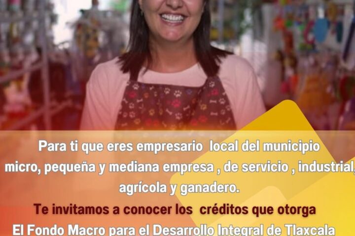La administración municipal de Lázaro Cárdenas, que encabeza la presidenta municipal Elena Macías Díaz, invita a los empresarios locales del municipio a conocer los créditos que otorga el Fondo Macro para el Desarrollo Integral de Tlaxcala (Fomtlax).