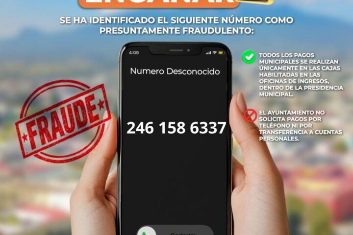Ante esta situación, el Gobierno Municipal de Huamantla alerta a la población para no dejarse engañar, ya que se trata de intentos de fraude que buscan obtener dinero de manera indebida.