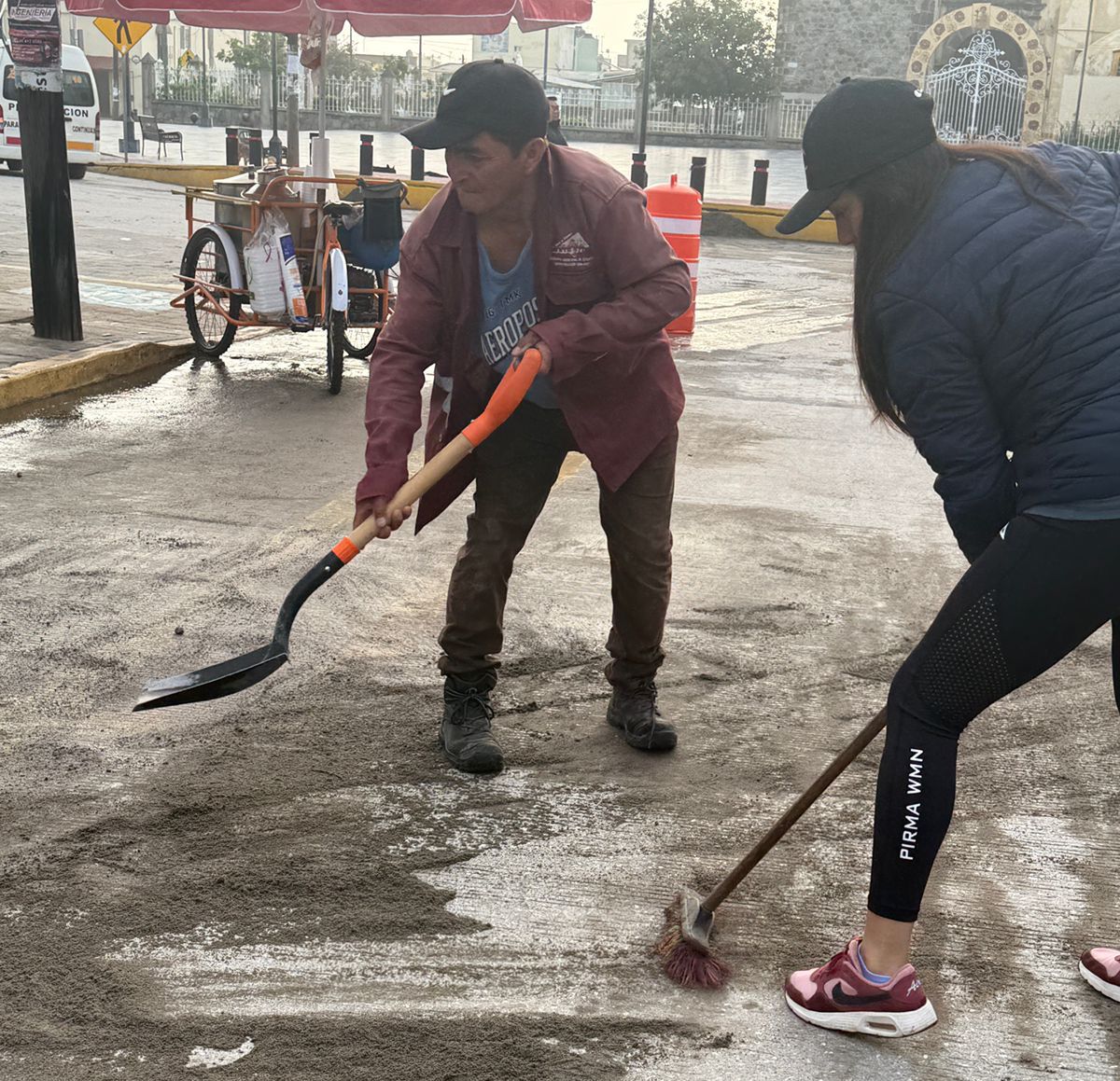 Por instrucciones y con la participación directa de la presidenta municipal Aline Lazo Caballero, el Gobierno Municipal de Ixtenco, a través de sus áreas operativas, personal del DIF Municipal, coordinadores de las áreas administrativas, Servicios Públicos y cuadrillas de empleo temporal, realizó labores de limpieza en el centro del Pueblo Mágico y en distintos puntos afectados por la tromba registrada la tarde-noche de ayer.