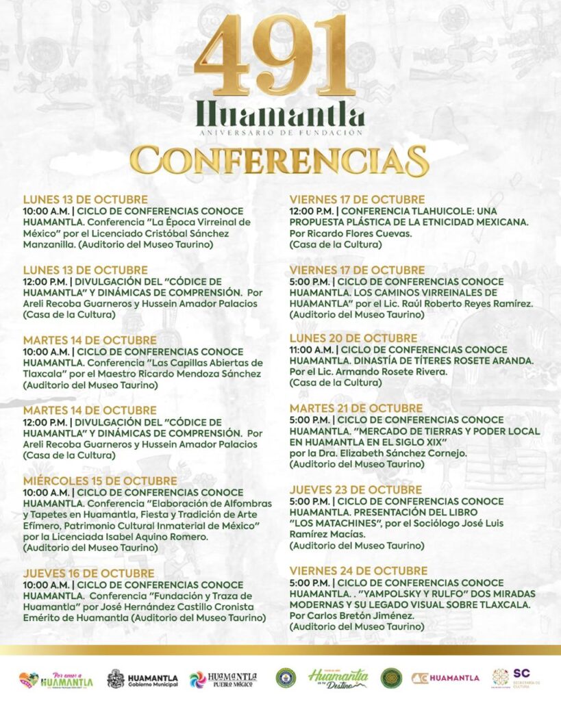 Como parte de las actividades conmemorativas por el 491 aniversario de la fundación de Huamantla, el H. Ayuntamiento, a través de la Dirección de Turismo, Cultura y Desarrollo Taurino, encabezada por el Lic. Marco Antonio Galindo Vallejo llevará a cabo un Ciclo de Conferencias que tiene como objetivo difundir el valor histórico, cultural y social del municipio, fortalecer el sentido de pertenencia y promover el diálogo entre ciudadanía y especialistas.