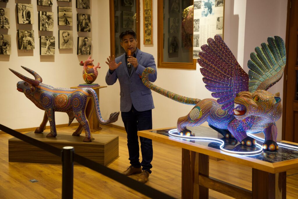 Así mismo, se inauguró la exhibición “Arte y Tradición en Huamantla: Alebrijes Taurinos”, con obras certificadas por Swarovski del maestro Francisco Rivas, que fusionan la tradición de los alebrijes con motivos taurinos. Esta exposición da muestra del talento artístico de nuestra comunidad.