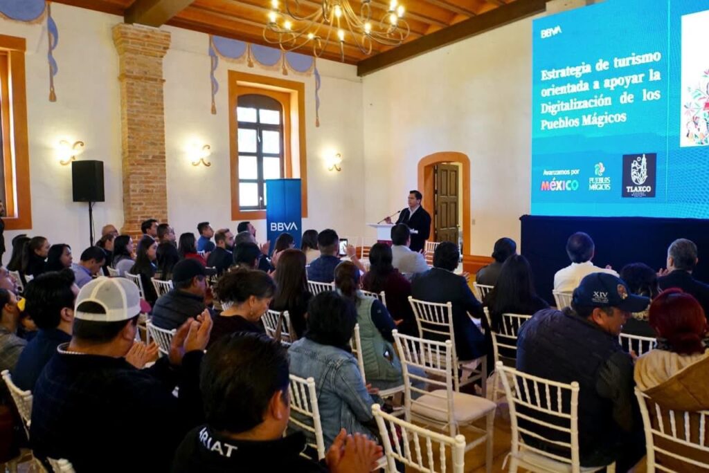En el marco de esta jornada, que incluyó una capacitación dirigida a representantes de Pueblos Mágicos, se sostuvieron encuentros con ejecutivos de BBVA para establecer las bases de una colaboración que permitirá acercar a Huamantla los beneficios de esta estrategia, enfocada en la inclusión financiera, la digitalización de servicios y el fortalecimiento del sector turístico local.