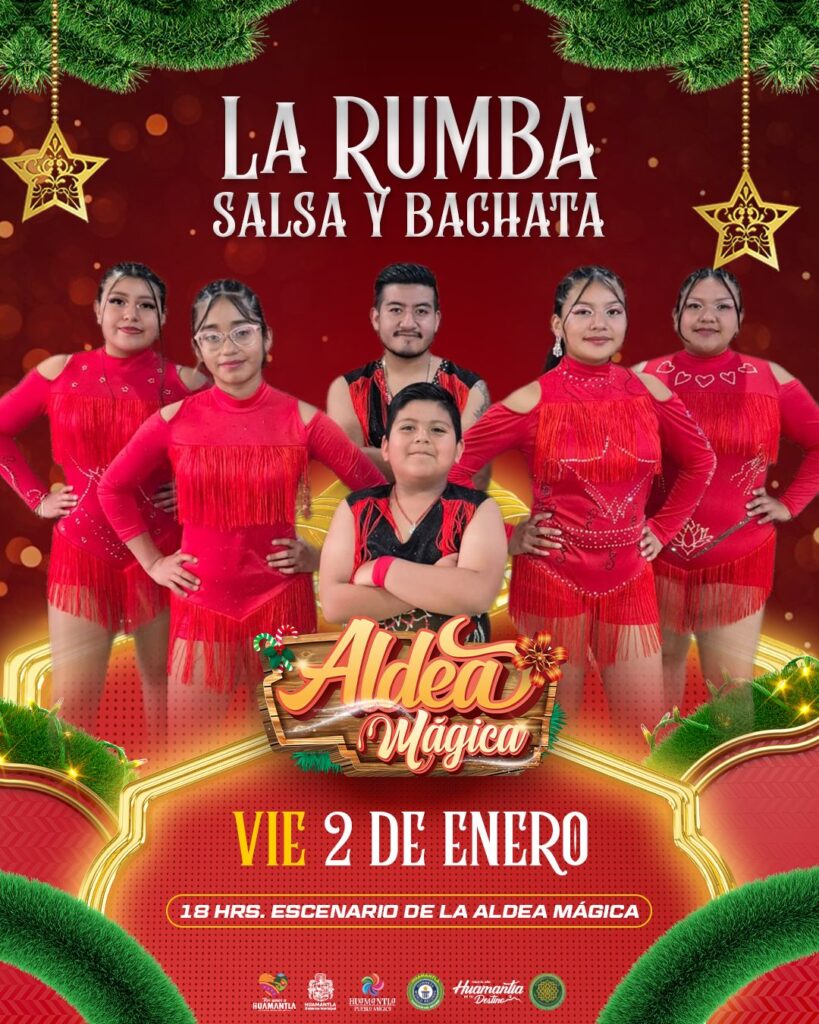 Este viernes 2 de enero, el escenario de la Aldea Mágica, ubicado en el Parque Juárez, será sede de una tarde llena de ritmo y talento. A las 17:00 horas se presentará Miguel Ángel Gutiérrez, y posteriormente, a las 18:00 horas, el público podrá disfrutar de la energía del grupo La Rumba, Salsa y Bachata.