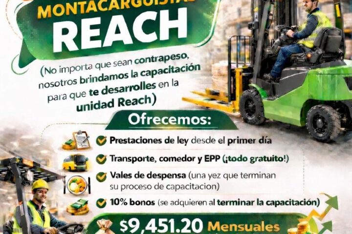 En esta ocasión, la empresa BERGÉ “Moved by Logistics” realizará proceso de selección para el puesto de Montacarguista Reach, brindando la oportunidad de integrarse a una empresa del sector logístico con importantes prestaciones y posibilidades de crecimiento.