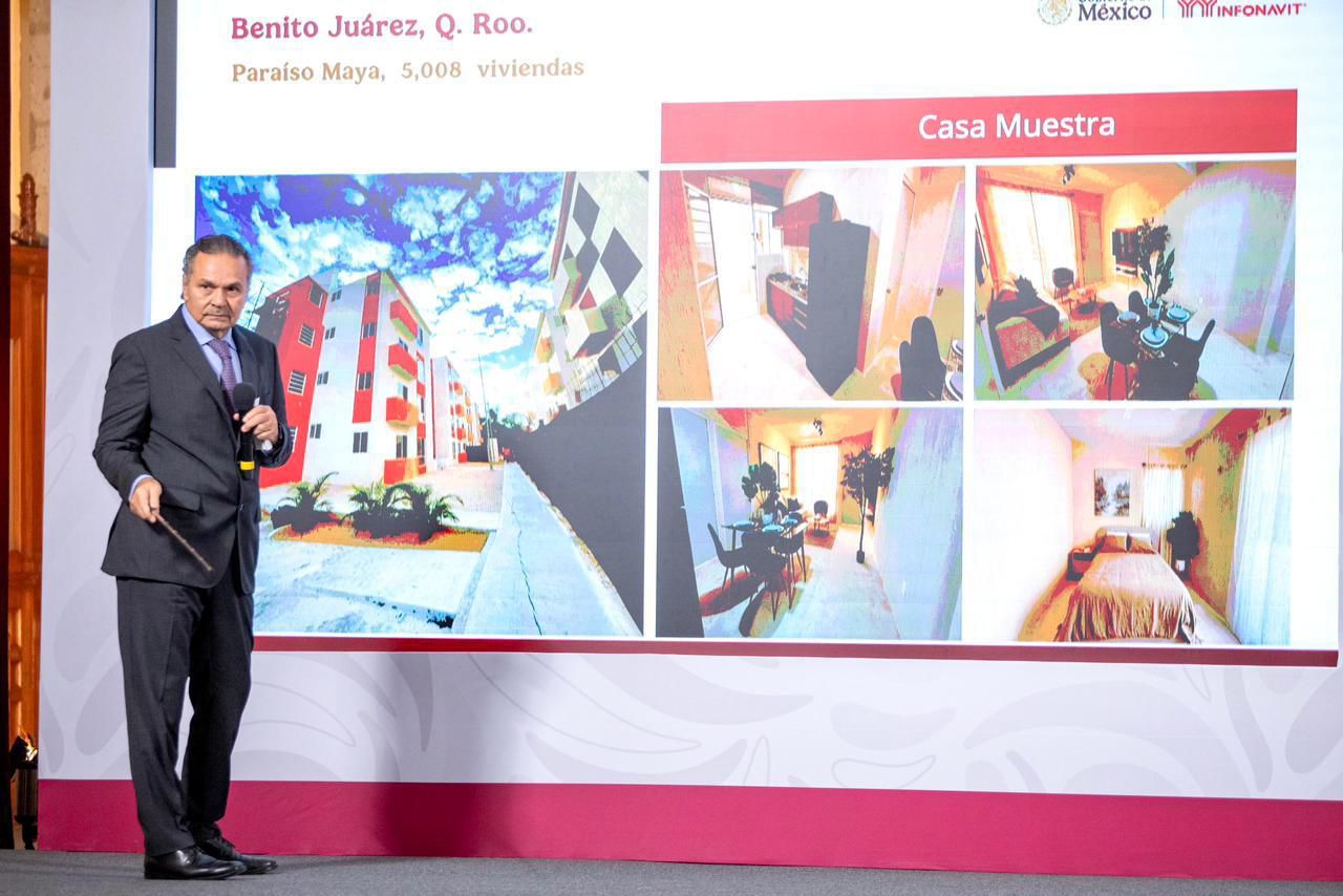 Mostró fotografías de desarrollos con viviendas terminadas y amuebladas en diferentes entidades.