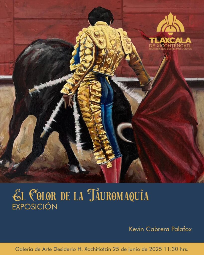 La primera de ellas es la exposición pictórica «El color de la tauromaquia», que se inaugurará el miércoles 25 de junio a las 11:30 horas en la Galería Municipal Desiderio Hernández Xochitiotzin. En esta muestra se presentarán 14 obras del artista Kevin Cabrera Palafox, que con un estilo vibrante y contemporáneo rinde homenaje a la estética, emoción y simbolismo de la fiesta brava.
