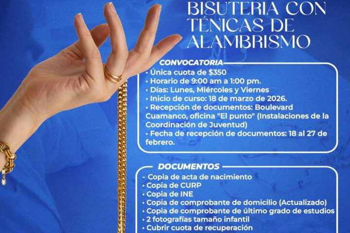 A través de la Coordinación de Juventud y en colaboración con el Instituto de Capacitación para el Trabajo del Estado de Tlaxcala (ICATLAX), el Gobierno Municipal de Huamantla invita a la ciudadanía a participar en el curso “Bisutería con Técnicas de Alambrismo”, una oportunidad para desarrollar habilidades creativas y fortalecer el autoempleo.
