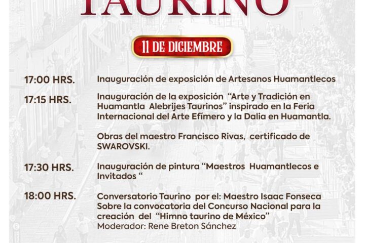 Finalmente, a las 18:00 horas, se realizará el Conversatorio Taurino impartido por el maestro Isaac Fonseca, quien abordará la convocatoria del Concurso Nacional para la Creación del Himno Taurino de México. La charla será moderada por el comunicador René Breton Sánchez.