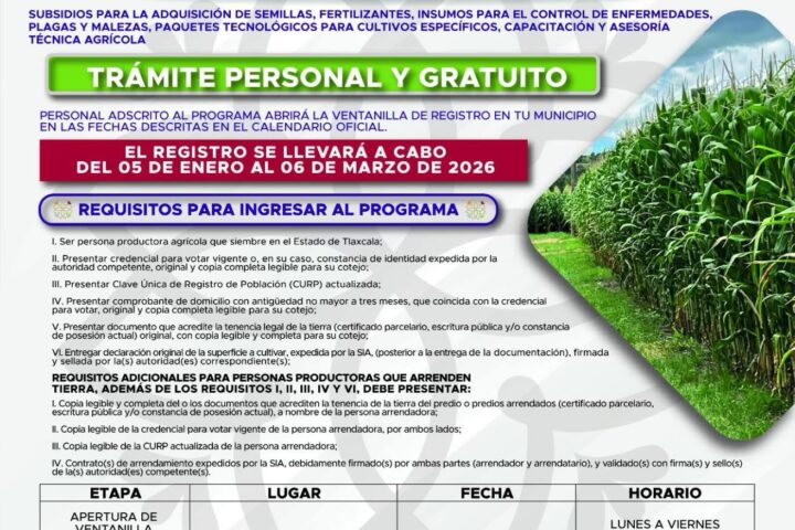 Para mayores informes, las y los productores pueden comunicarse al 246 465 0900, extensión 2225, o consultar la página oficial siatlaxcala.gob.mx.