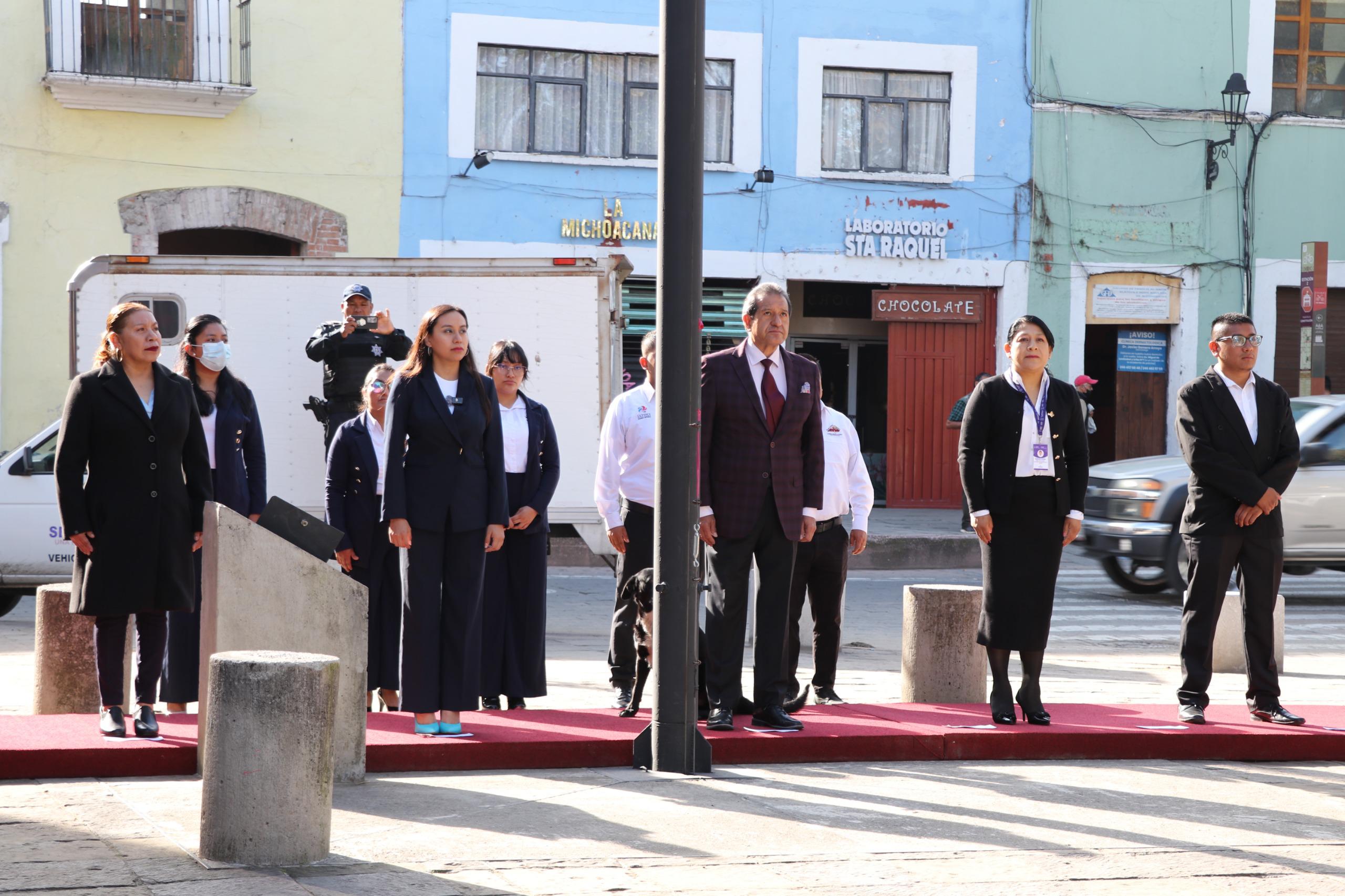 El Gobierno Municipal de Ixtenco, encabezado por la presidenta Aline Lazo Caballero, participó en la ceremonia de izamiento de la Bandera Nacional realizada en la Plaza de la Constitución de Tlaxcala, como parte de las actividades conmemorativas del mes patrio.