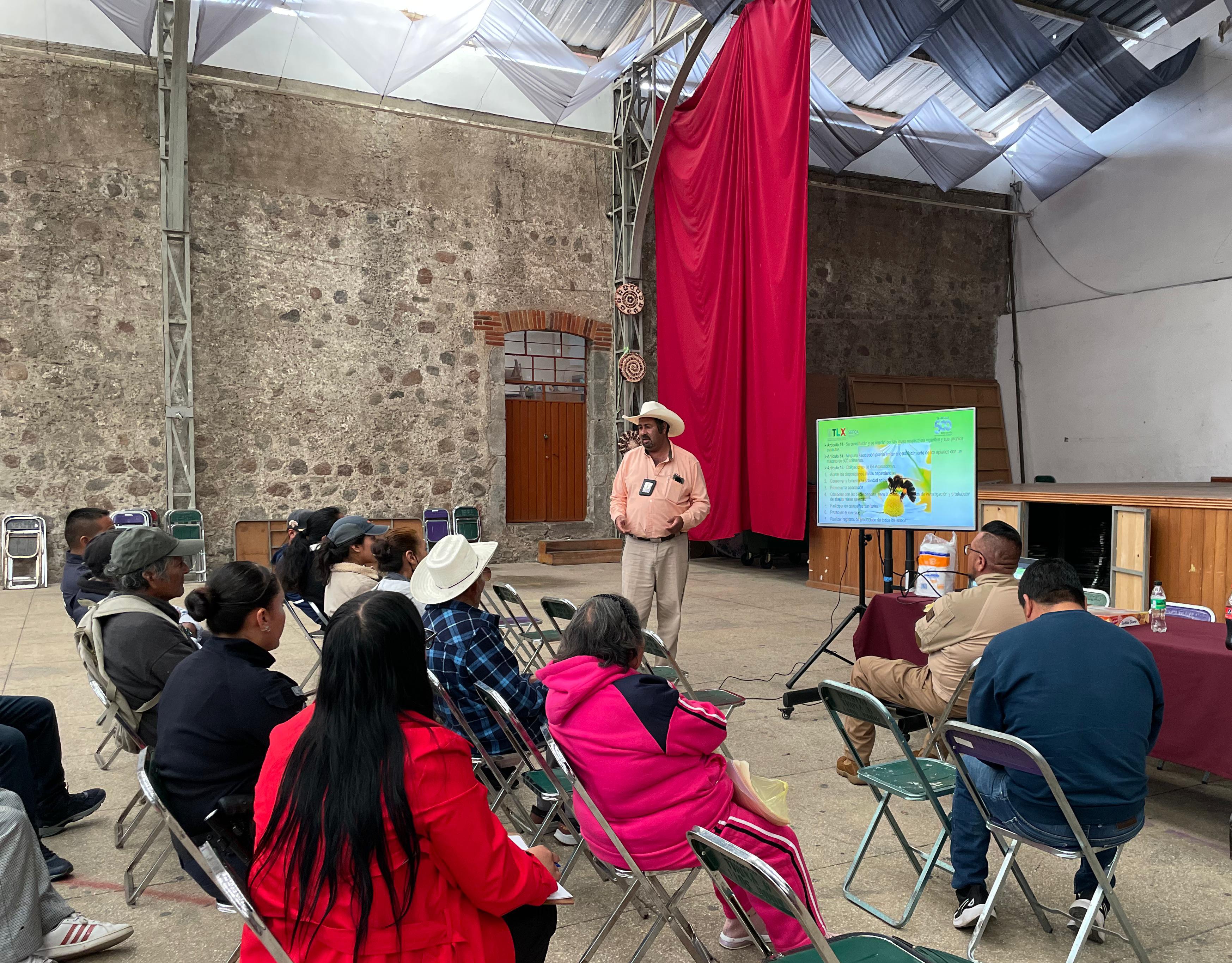 La jornada fue impartida por la Secretaría del Impulso Agropecuario del Estado de Tlaxcala y reunió a 15 apicultores de Ixtenco, quienes recibieron información sobre la instalación de apiarios, la actualización de la Unidad de Producción Pecuaria (UPP), la georreferenciación de colmenas y las obligaciones establecidas en la NOM-002-SAG/GAN-2016, enfocadas en el control de la abeja africana.