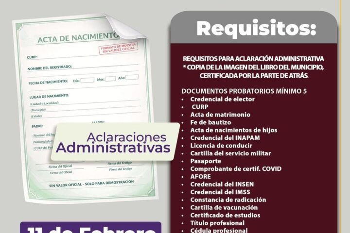 El próximo miércoles 11 de febrero se realizará en Ixtenco una Jornada de Aclaraciones Administrativas de Actas, dirigida a personas que necesiten corregir datos, validar información o regularizar documentos oficiales como actas de nacimiento, matrimonio y defunción.