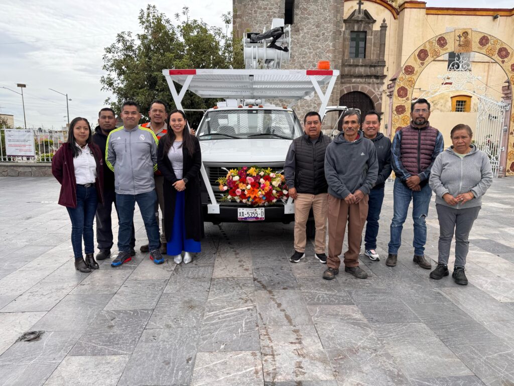 Por primera vez en la historia del municipio, el Gobierno Municipal que encabeza la presidenta Aline Lazo Caballero entregó una camioneta equipada con canastilla hidráulica al Área de Servicios Públicos, lo que permitirá realizar trabajos de mantenimiento en altura sin necesidad de contratar servicios externos.