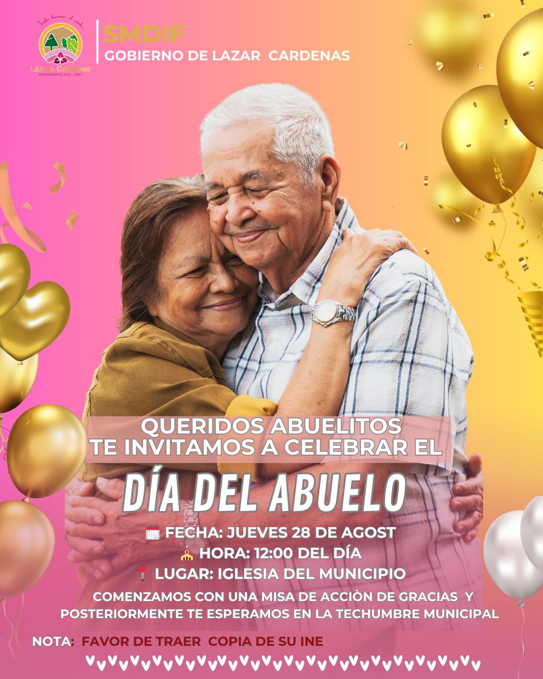 La administración municipal de Lázaro Cárdenas, encabezada por la alcaldesa Elena Macías Díaz, extiende una cordial invitación a todos los abuelitos y abuelitas del municipio para celebrar juntos el Día del Abuelo, este próximo jueves 28 de agosto.
