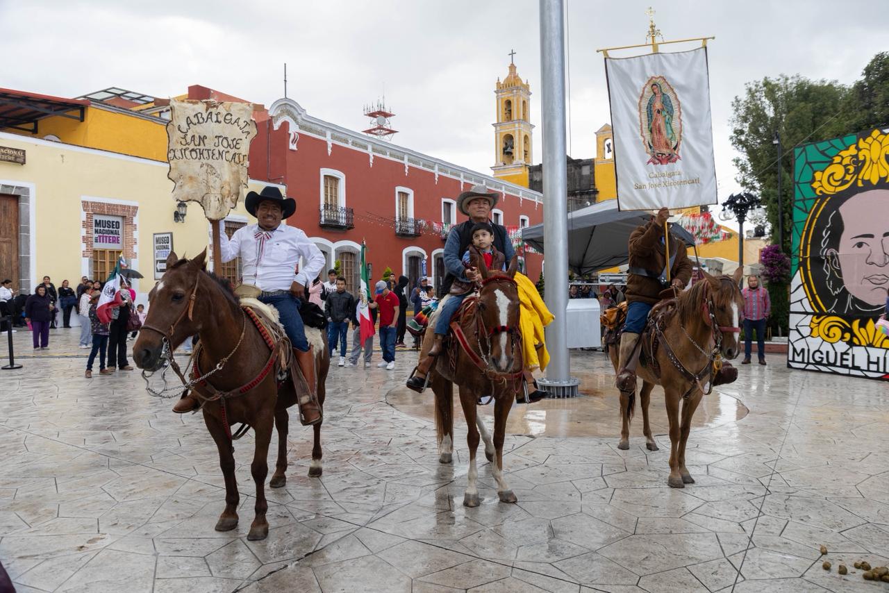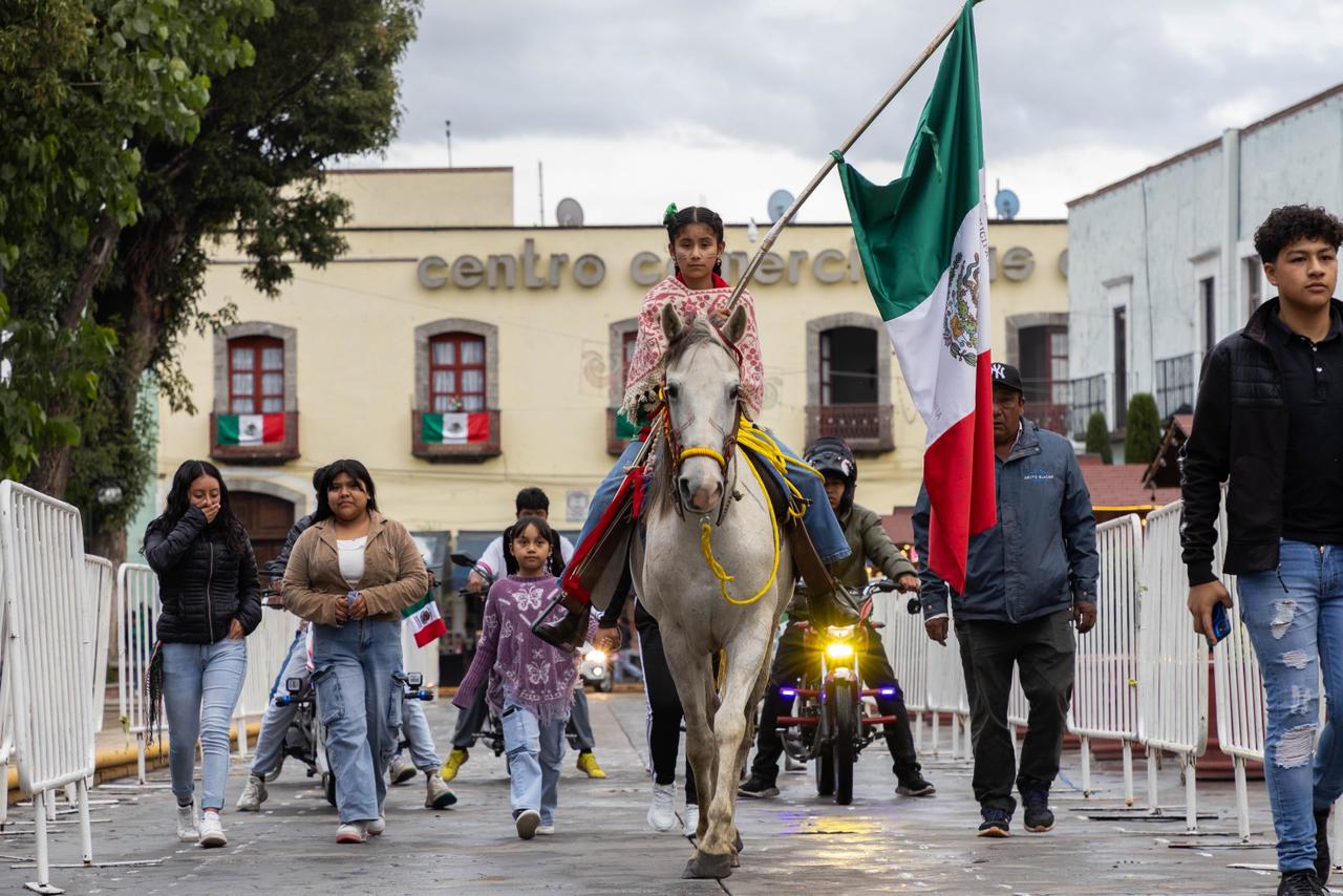 Así mismo, la cabalgata del pueblo de Xicoténcatl, comunidad de Huamantla, acudió a recibir el fuego patrio y también coronó a su reina de las fiestas patrias como parte de esta celebración.