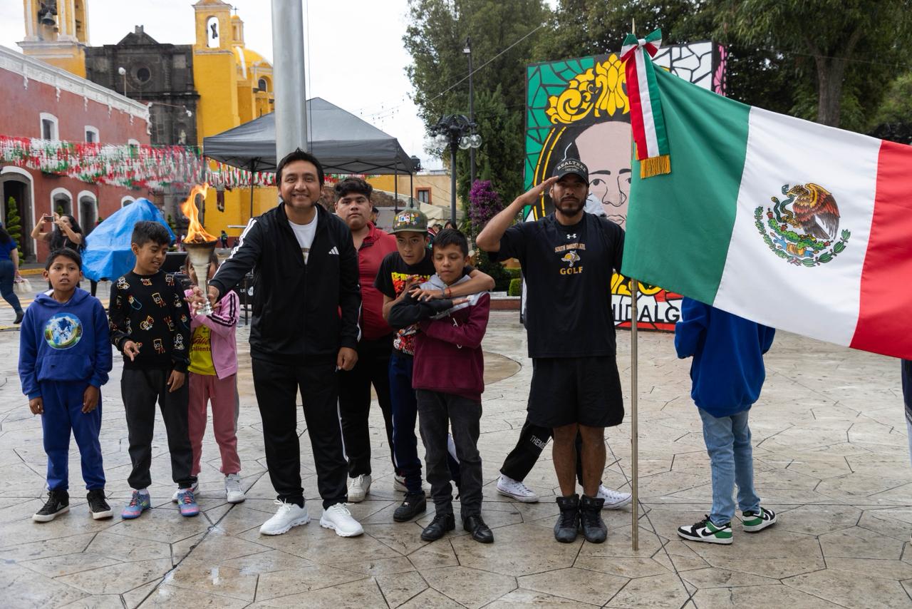 Con gran emoción y orgullo, las 39 comunidades de Huamantla recibieron el fuego patrio en la explanada del Palacio Municipal, evento encabezado por la síndico municipal, Brizeyla Iveet Rodríguez López, en representación del presidente municipal, Salvador Santos Cedillo, acompañada de regidores y de integrantes de la comisión de fiestas patrias.