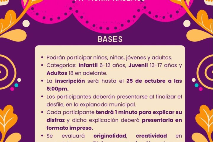 • 🎭 Concurso de Disfraces: con categorías infantil, juvenil y adultos.