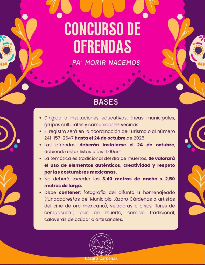 El Gobierno Municipal de Lázaro Cárdenas, a través de la Coordinación de Turismo, ha preparado un programa lleno de color, música y tradición, que incluye concursos, exposiciones y actividades culturales dirigidas a todas las edades. 🇲🇽✨