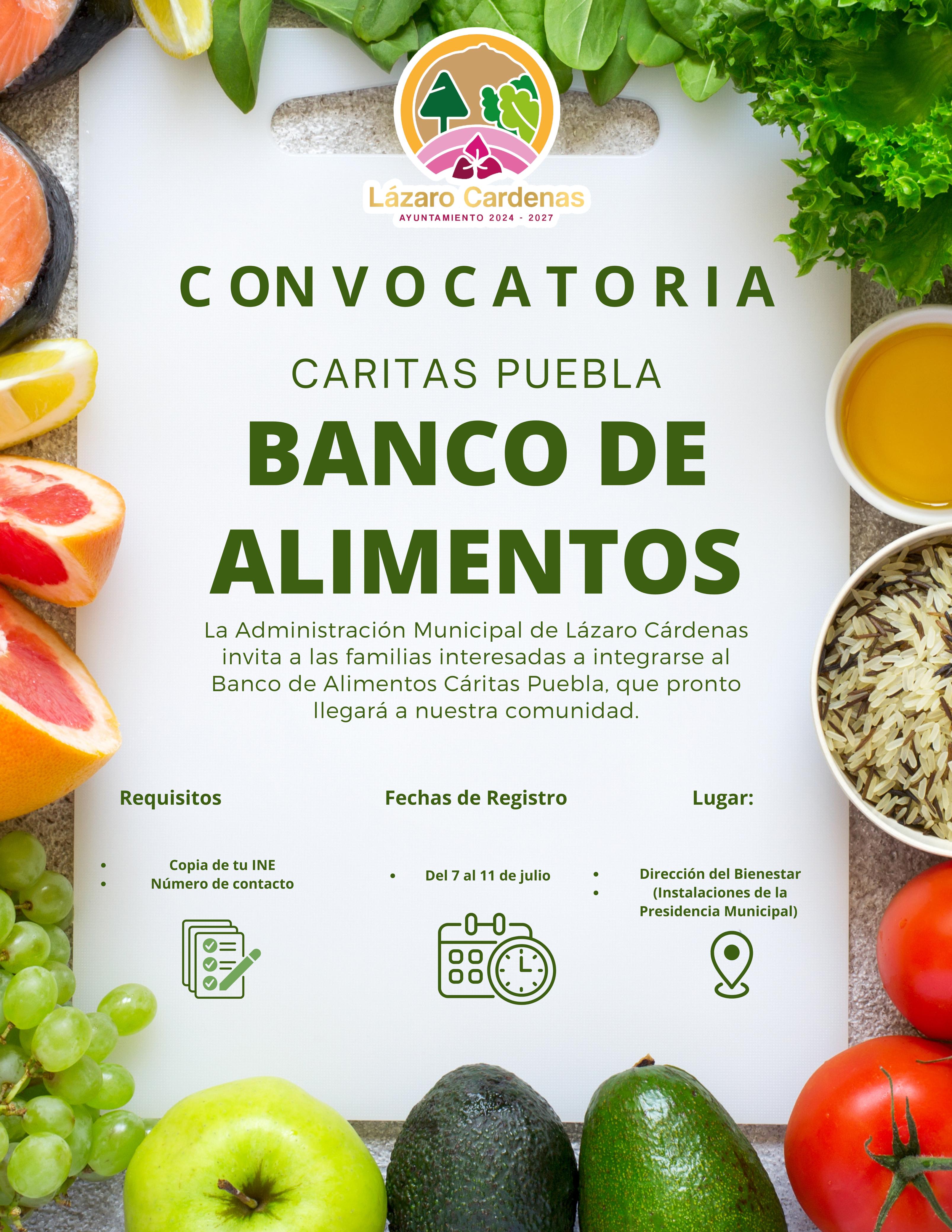 Con el firme compromiso de combatir la inseguridad alimentaria y mejorar la calidad de vida de las familias del municipio, la presidenta municipal Elena Macías Díaz anunció el inicio del registro para integrarse al Banco de Alimentos Cáritas Puebla, que próximamente comenzará operaciones en la comunidad.