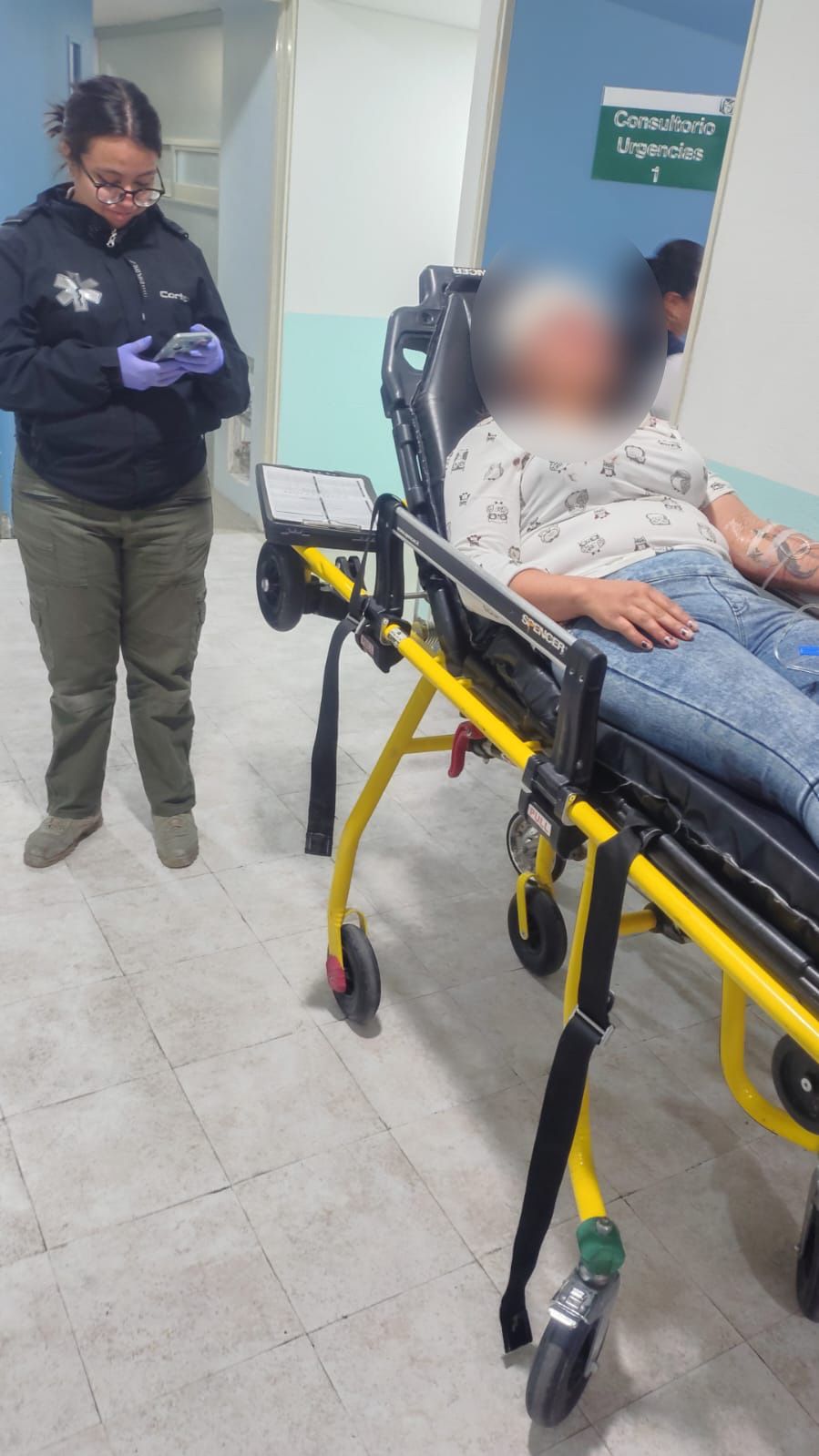 Los hechos ocurrieron sobre la calle 16 de Septiembre, esquina con Cuauhtémoc, donde al arribar las unidades de emergencia se localizó a una mujer consciente y orientada, quien presentaba una laceración en la región frontal con hemorragia activa.