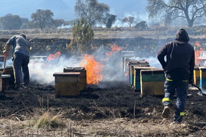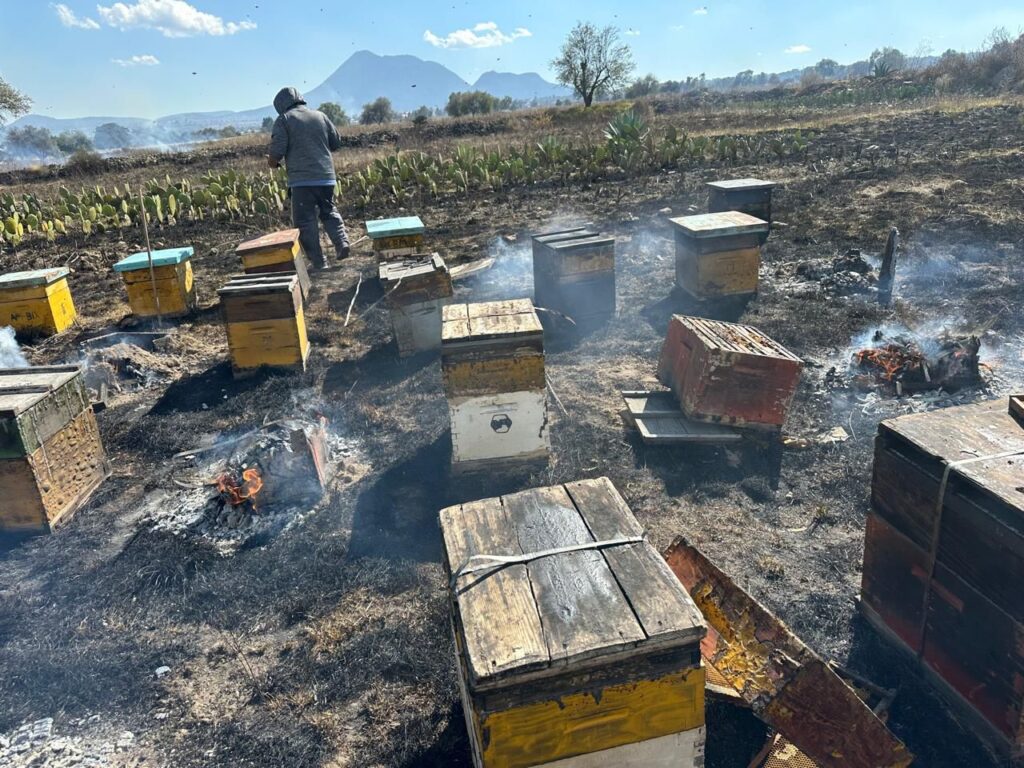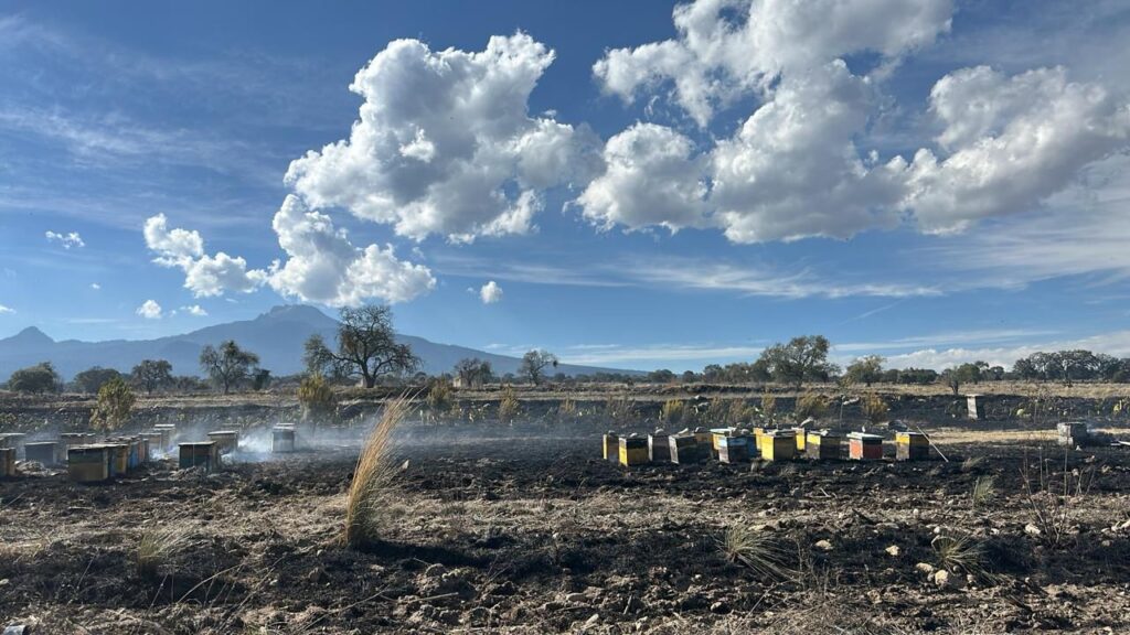 De acuerdo con el reporte, este siniestro no solo impactó la vegetación del área, sino que también generó una afectación directa a aproximadamente 110 cajas de colmenas, lo que provocó la pérdida de abejas, especies fundamentales para la polinización, la producción de alimentos y el equilibrio del ecosistema.