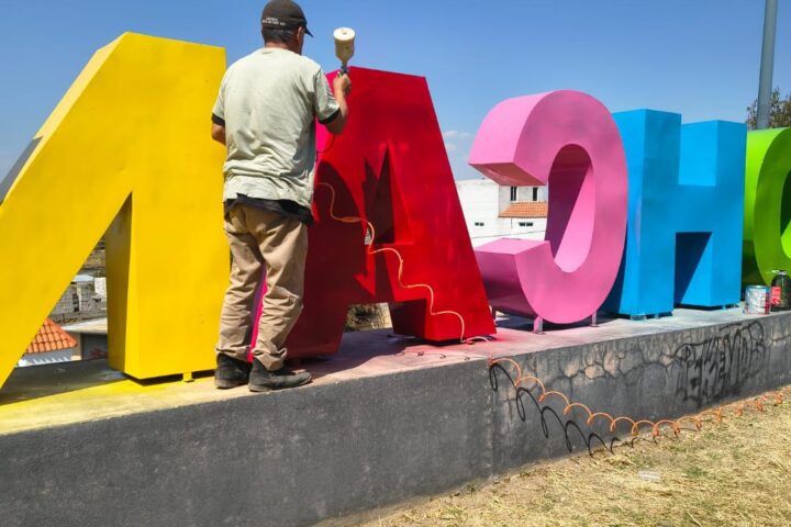 Como parte de las acciones de mantenimiento de espacios públicos, se llevó a cabo la rehabilitación y pintura de las letras ubicadas en el Barrio de Santa Rosa, en Jesús Xolalpan.