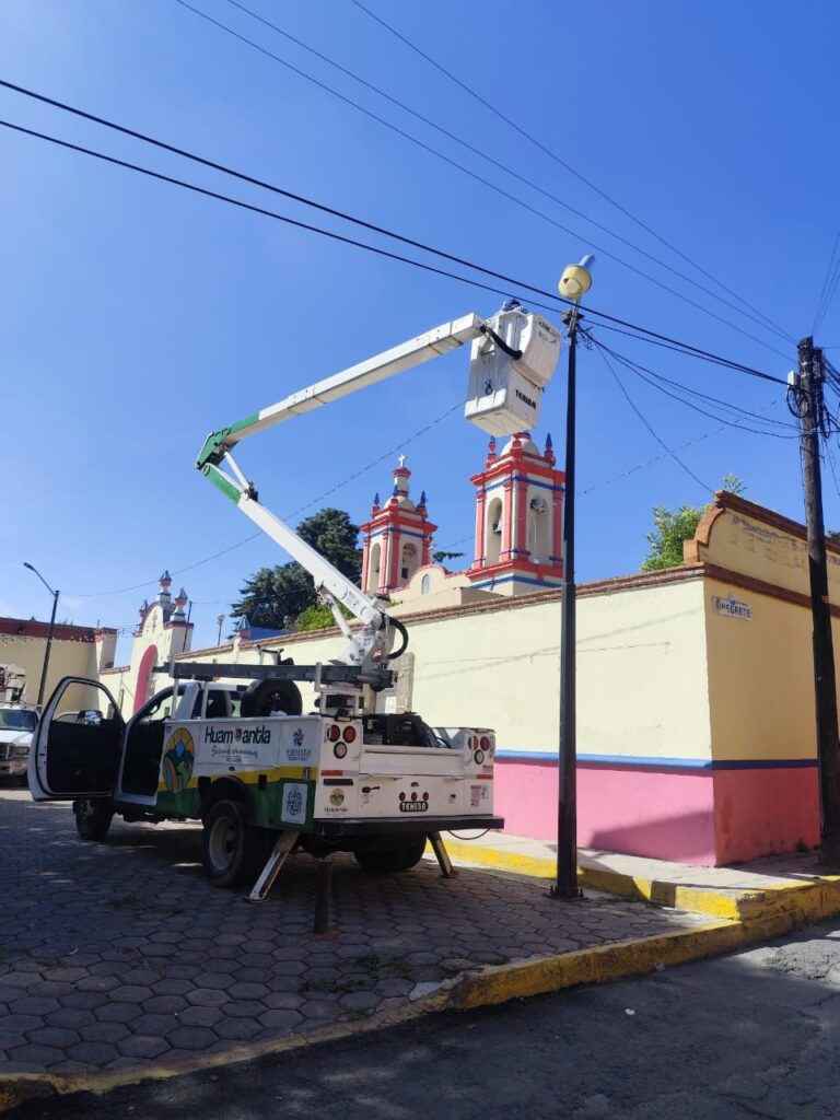 Entre las labores destacan el reemplazo de iluminación en El Toro y en luminarias públicas de la comunidad de San Antonio, así como el mantenimiento y pintura del asta bandera en la explanada municipal, símbolo patrio que representa la unidad y el orgullo de las familias huamantlecas.