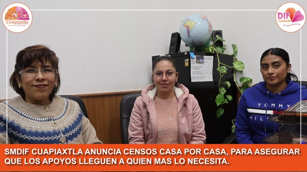 Cuapiaxtla, Tlax.-Con el objetivo de garantizar que los apoyos sociales lleguen a quienes más lo necesitan, el Sistema Municipal DIF (SMDIF) Cuapiaxtla dio a conocer el inicio de censos casa por casa en el municipio y sus nueve comunidades.