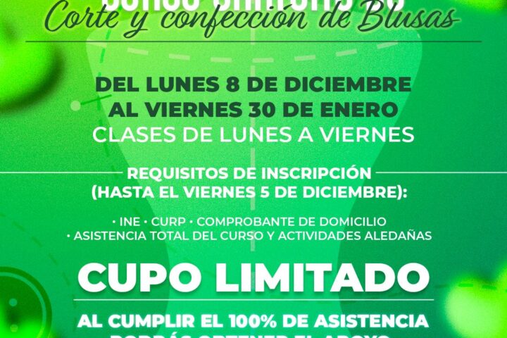 Con el propósito de brindar herramientas que fortalezcan la economía familiar y promuevan el desarrollo de nuevas habilidades, el Sistema Municipal DIF Huamantla anuncia la apertura de inscripciones para el curso gratuito de Corte y Confección de Blusas, una propuesta formativa pensada para quienes desean aprender desde cero, perfeccionar técnicas o retomar su camino en el mundo textil.