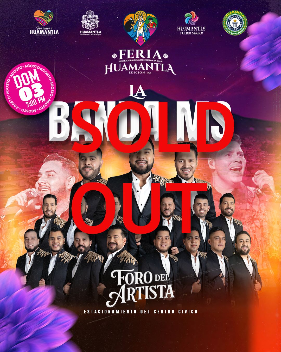 El Gobierno Municipal de Huamantla informa a la ciudadanía que, debido a la alta demanda y gran respuesta del público, el evento de esta noche con la presentación estelar de la Banda MS, en el marco de la Feria Internacional del Arte Efímero y la Dalia Huamantla 2025, ha alcanzado su límite de capacidad.