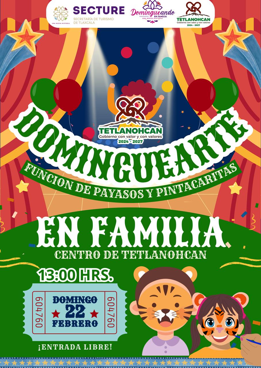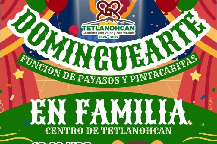 Con el objetivo de fortalecer la convivencia familiar y promover actividades recreativas en el municipio, el Gobierno Municipal de Tetlanohcan, en coordinación con la Secretaría de Turismo del Gobierno del Estado, llevará a cabo la función de payasos y pintacaritas “Dominguearte en Familia”.